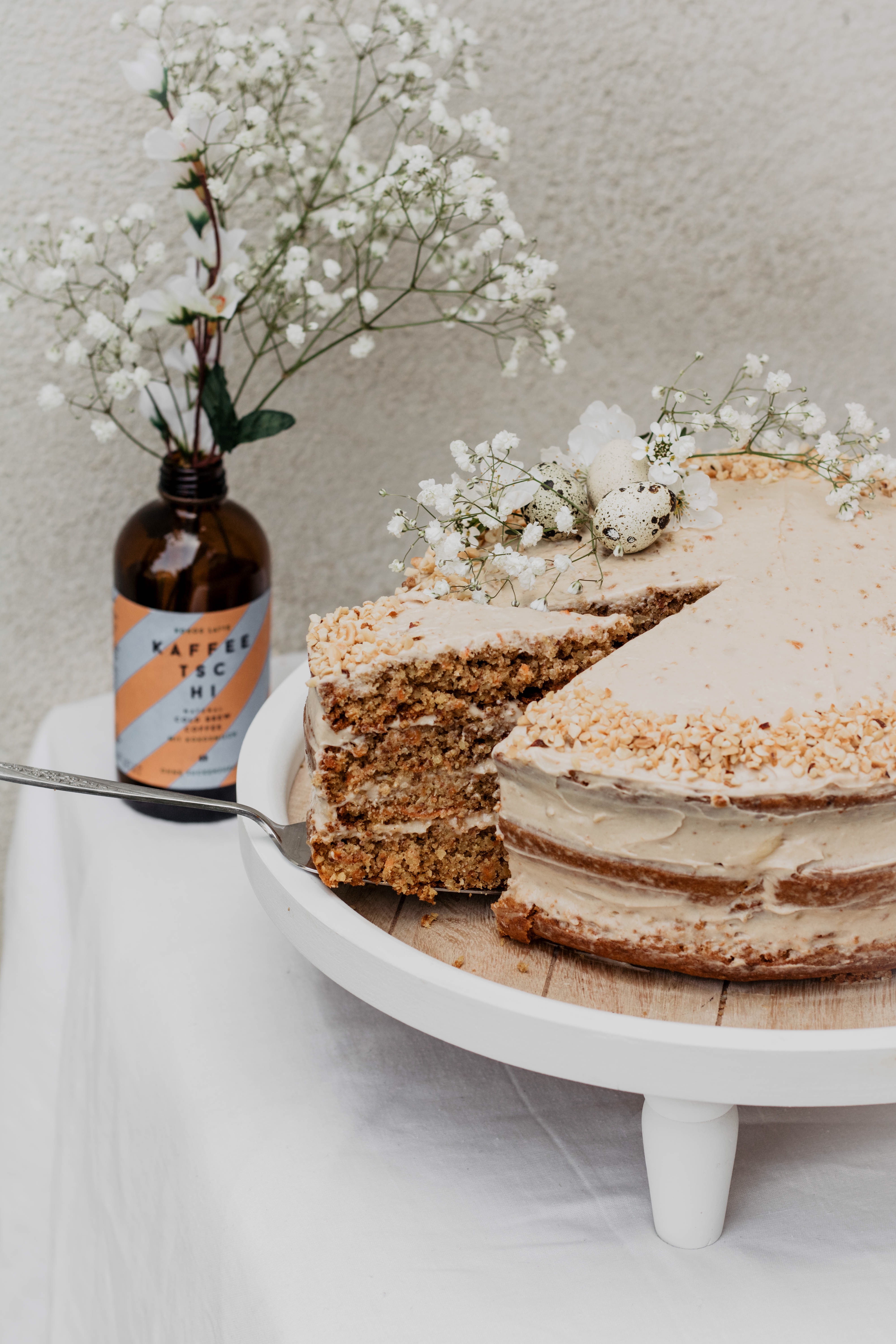 Da ihr letztes Jahr meine vegane Karottentorte so gefeiert habt und dass hier der Post mit den meisten Aufrufen auf meinem Blog war, habe ich mir heuer wieder ein super leckeres Oster Rezept überlegt und mich dabei sogar selbst übertroffen habe. Durch das Kaffeetschi Frosting ist die Torte natürlich etwas mehr Aufwand, aber ich schwör euch, wenn ihr ein Stück probiert habt, wisst ihr das es den Aufwand wert war! 🙌😍