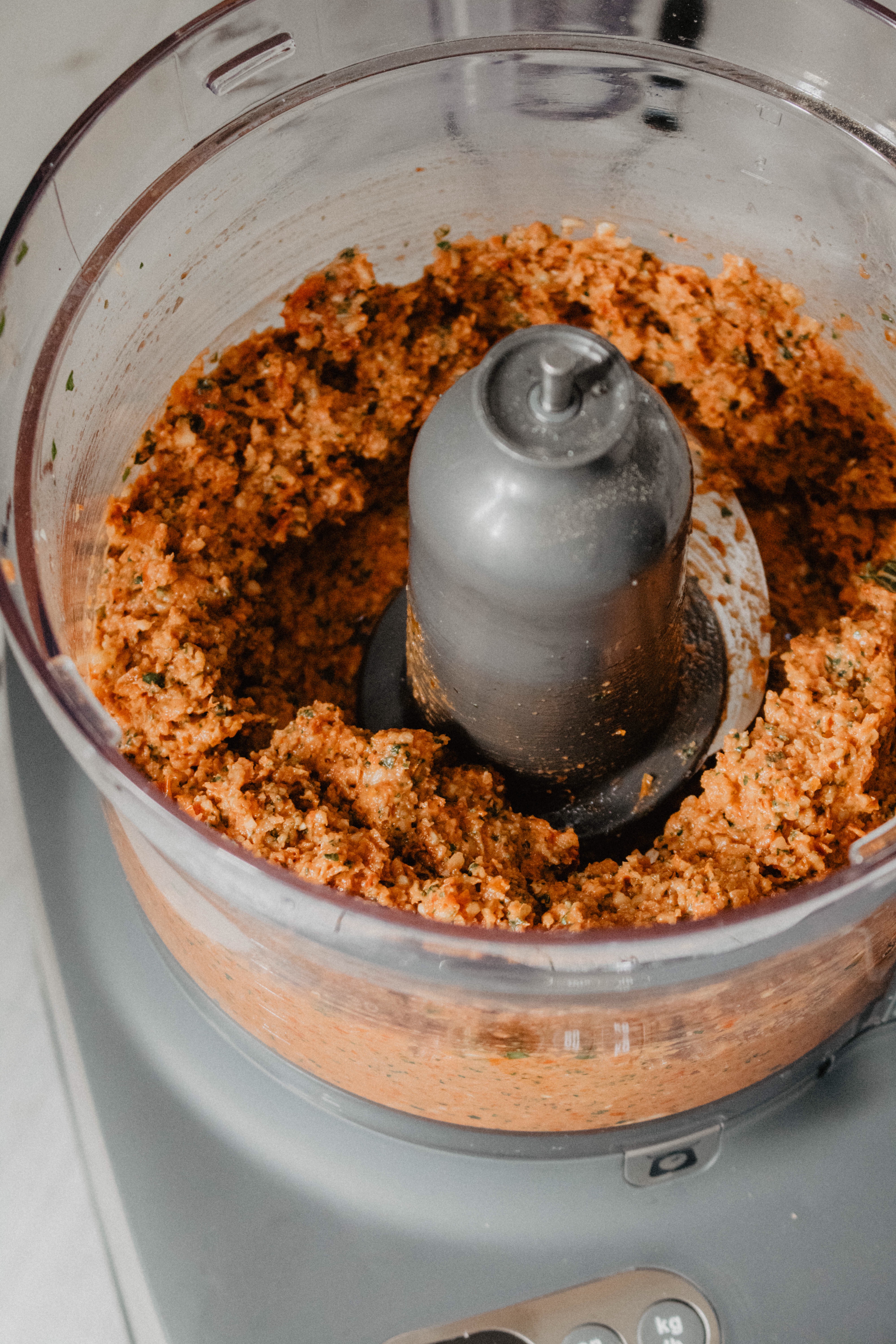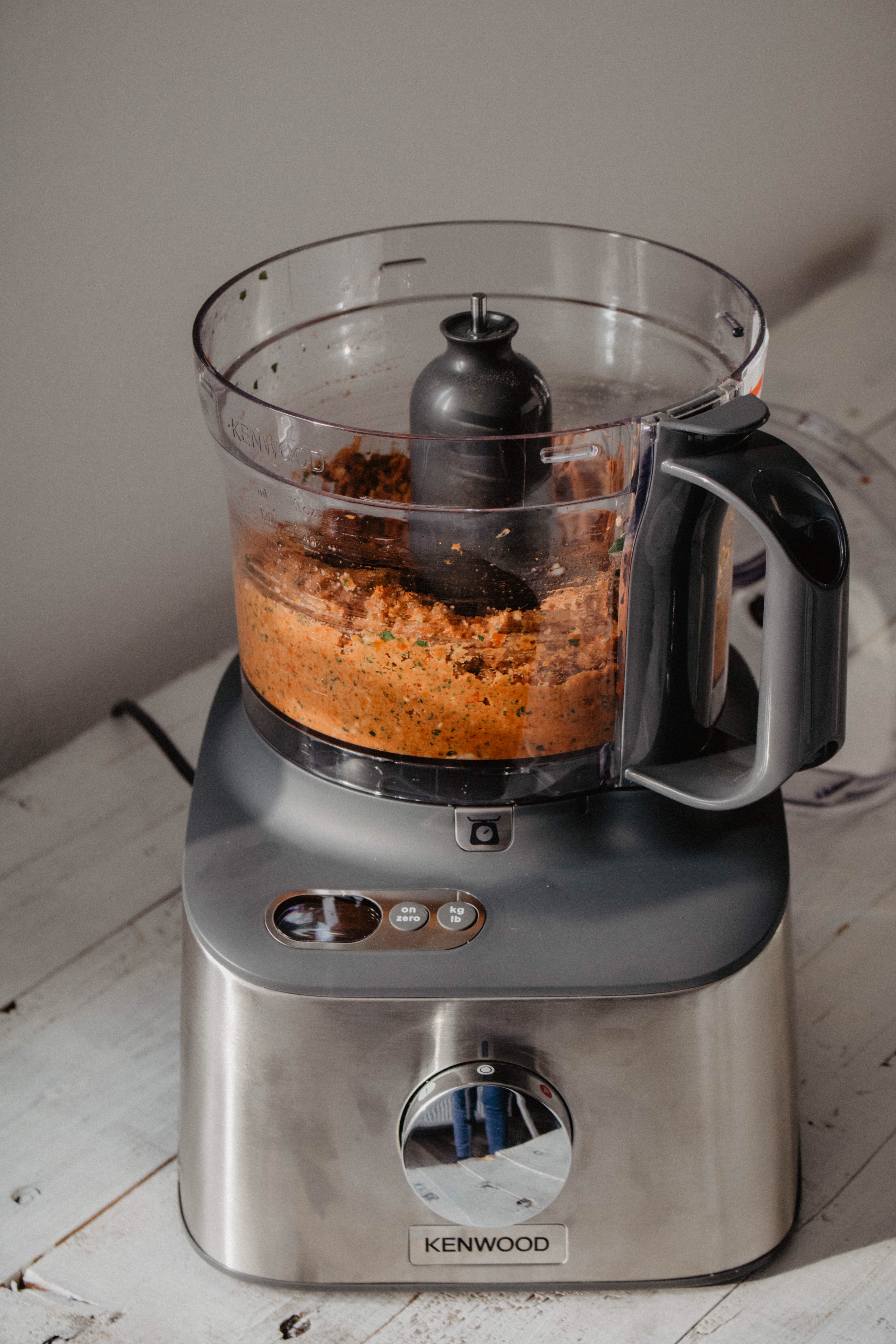 Den Knoblauch schälen und danach alle Zutaten für das Pesto in einen Mixer oder Foodprocessor fein pürieren.
