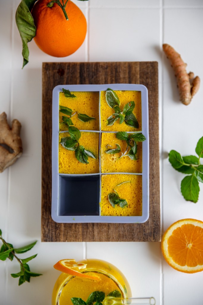 Immunbooster-Würfel mit Orangen, Zitronen, Ingwer und Kurkuma